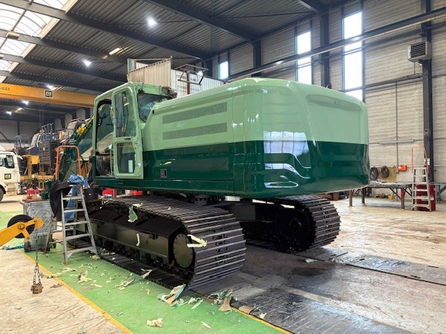Voor een gewaardeerde klant hebben we deze gebruikte machine in bedrijfskleur gespoten, de machine moest in 2K componenten lak worden gespoten met 3 verschillende kleuren toe te passen.